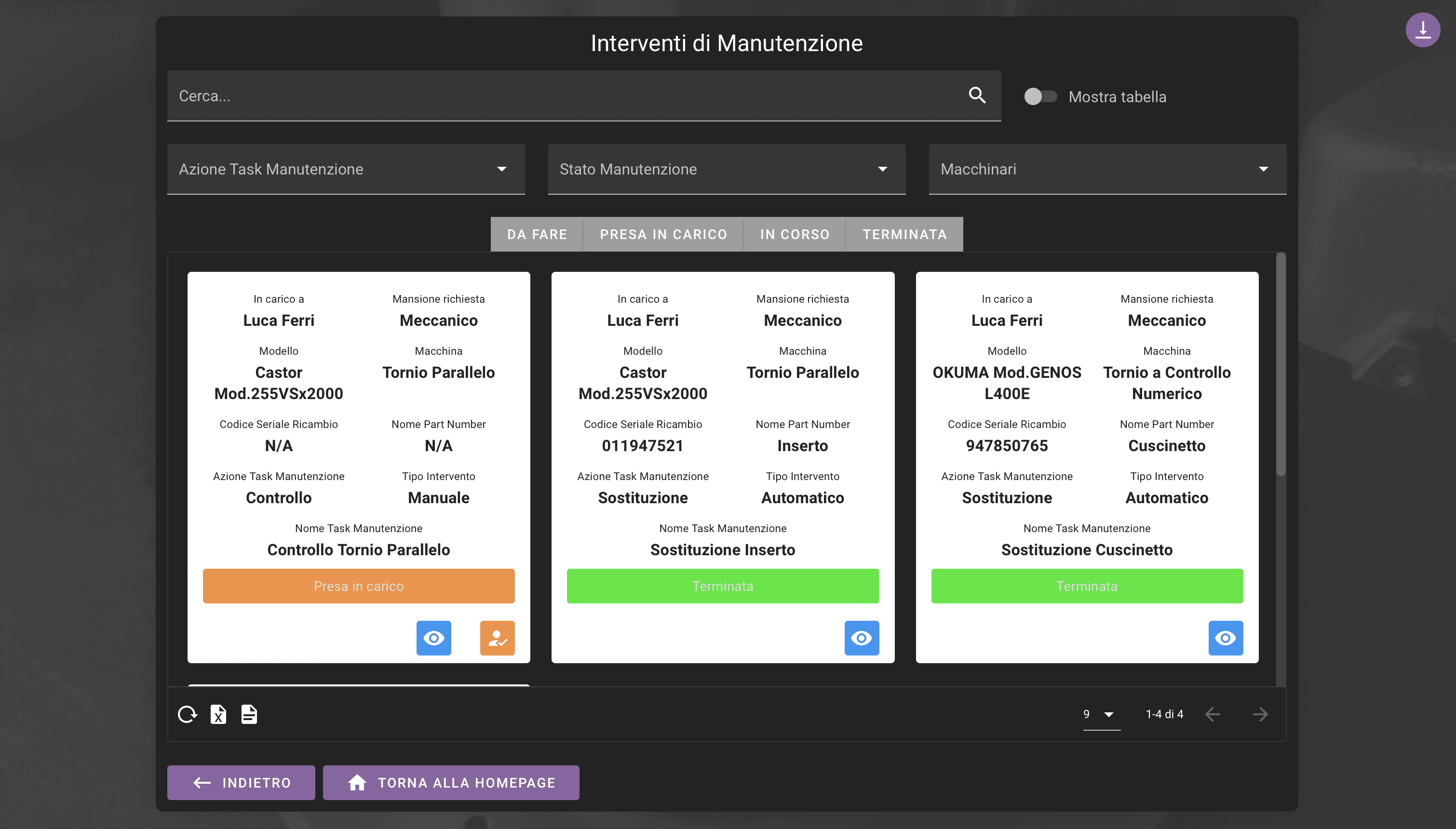 Ogni operatore è connesso, tracciato e abilitato solo per le attività per cui è formato. In base al tipo di permessi può avviare, mettere in pausa, completare le fasi operative, registrare attività e materiali utilizzati, e segnalare eventuali anomalie.