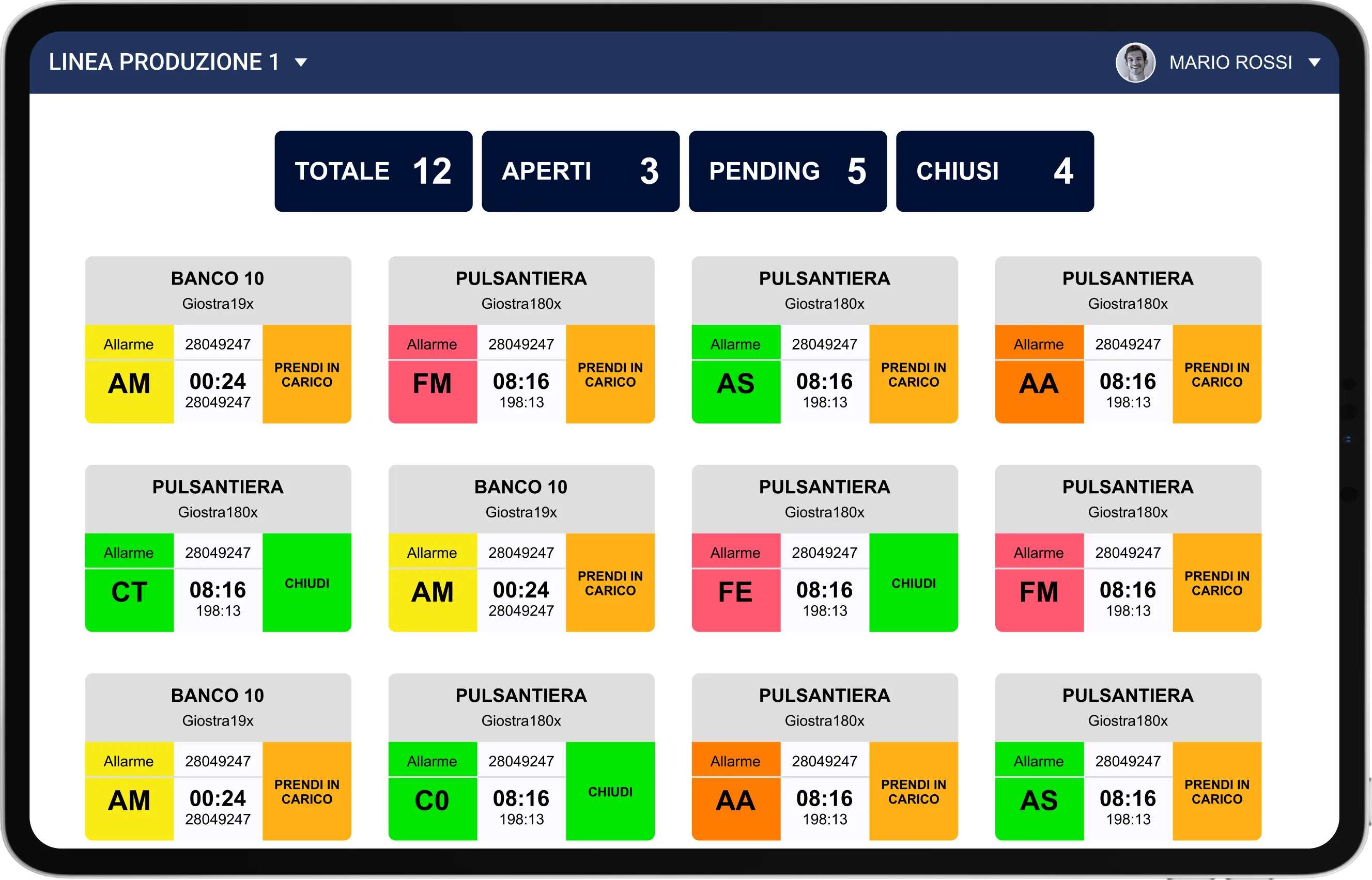 I carrellisti attraverso l’interfaccia visualizzano l’elenco delle richieste attive in tempo reale. Con un tocco prendono in carico la chiamata: la luce diventa fissa.